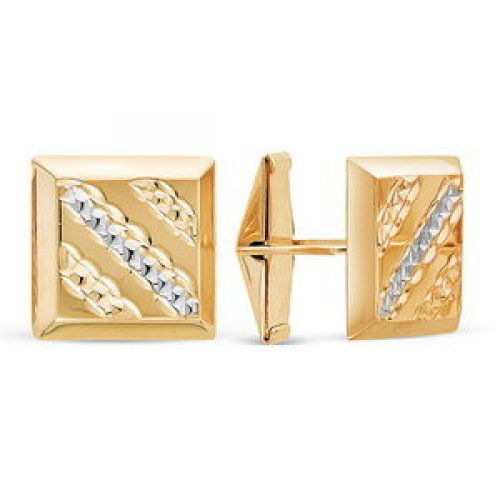 Запонки мужские из красного золота 585 пробы с алмазной гранью