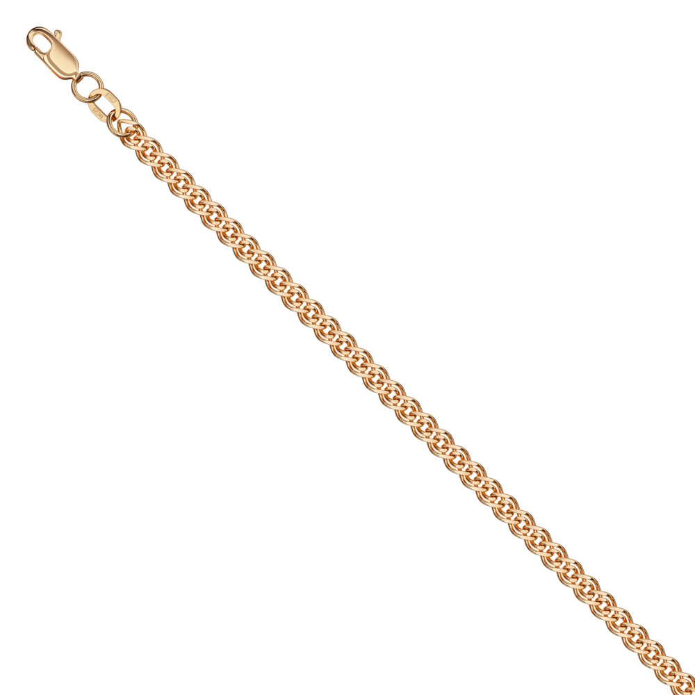 Полновесный браслет из красного золота 585 пробы с утончённым плетением «нонна» и уникальной отделкой алмазной гранью