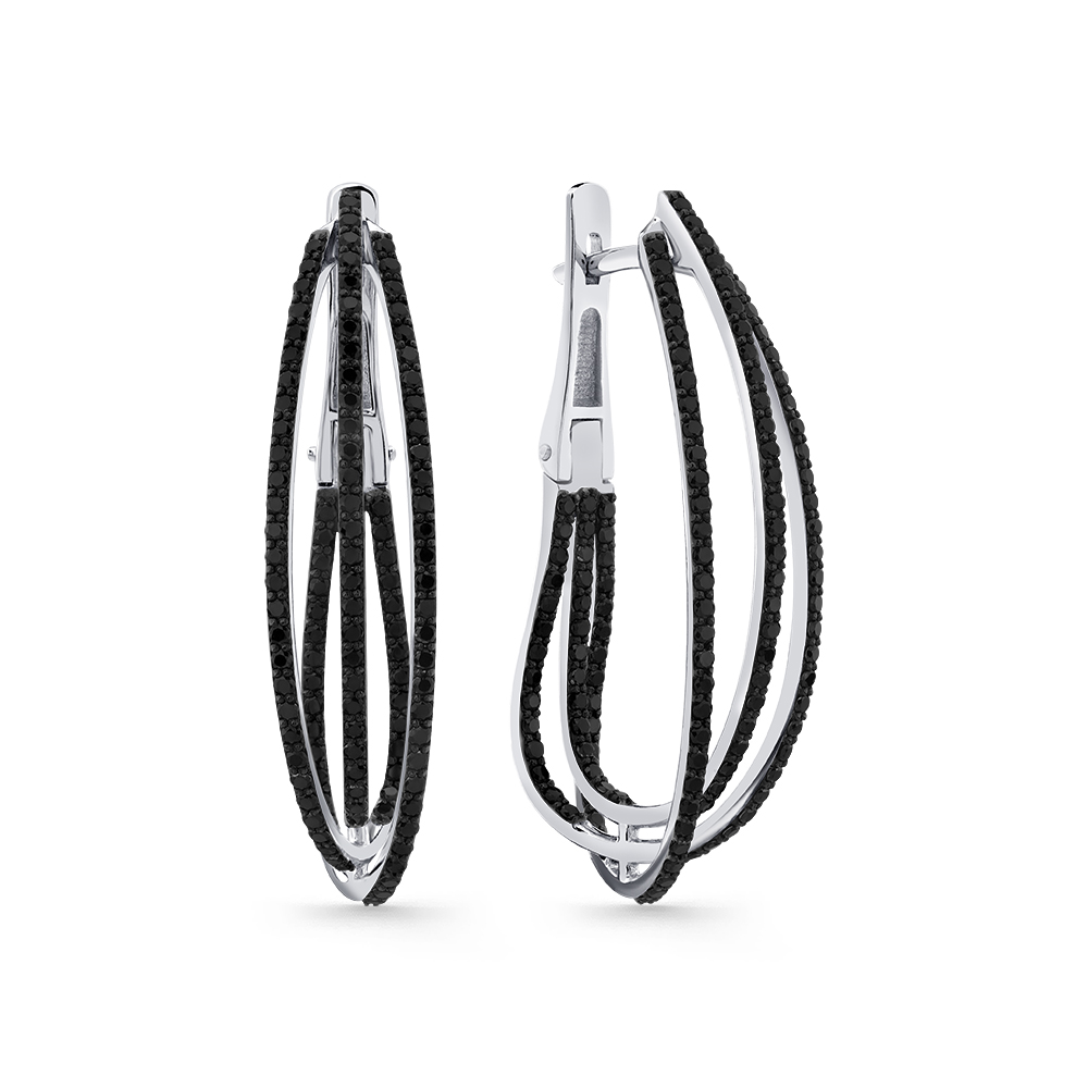 Серьги из белого золота с черными бриллиантами. Эти серьги выполнены в минималистичном стиле и имеют современный дизайн. Серьги имеют английский замок,, что обеспечивает их надежную фиксацию на ухе. Эти серьги станут отличным дополнением к любому наряду и подчеркнут вашу индивидуальность.