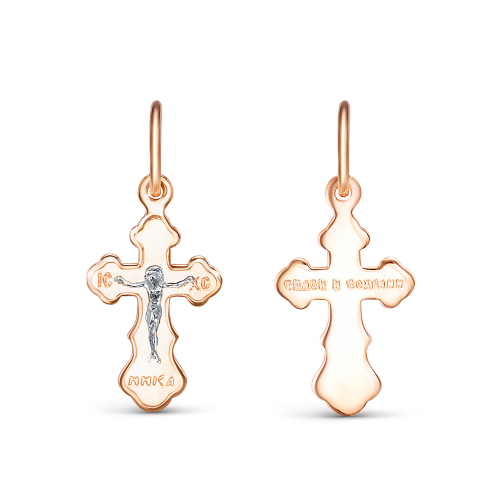 Подвеска в виде нательного креста выполнена из комбинированного золота 585 пробы