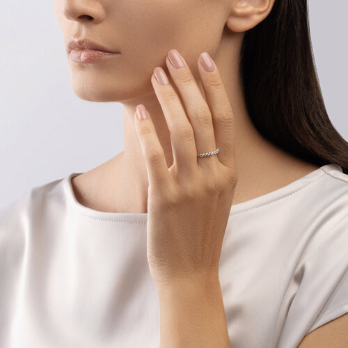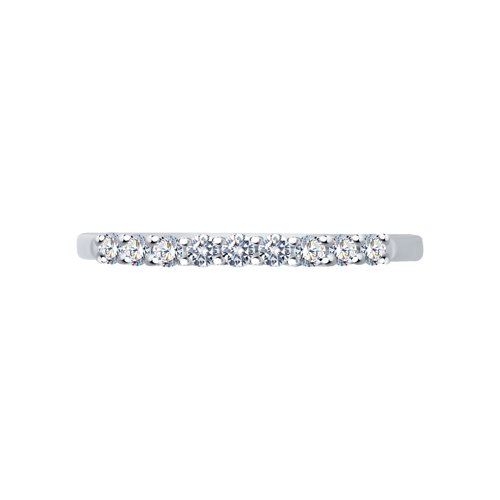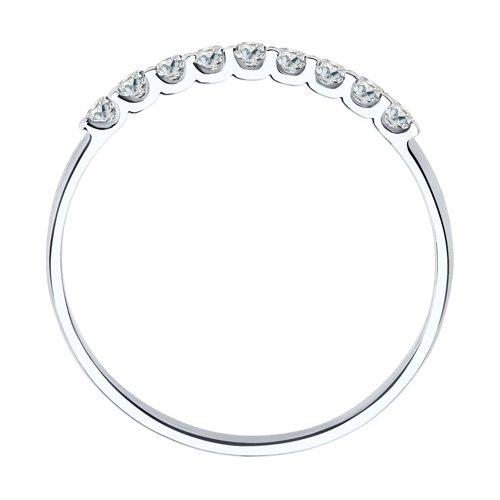 Изящное кольцо, украшенное дорожкой сверкающих фианитов, выполнено из белого золота 585 пробы