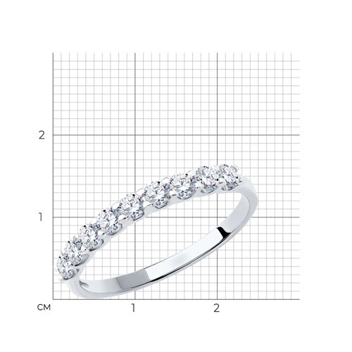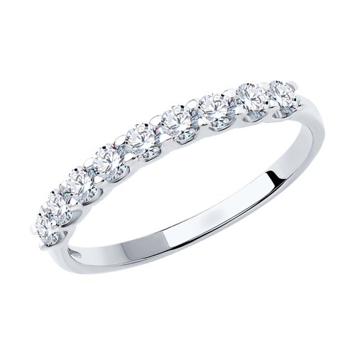 Изящное кольцо, украшенное дорожкой сверкающих фианитов, выполнено из белого золота 585 пробы. Именно такие украшения универсально подходят к какому угодно образу и способны изящно завершить любой наряд. Изделие представлено брендом SOKOLOV. Вставки: 9 × Фианит недраг Бесцветный 2.00 ~0,590 кар. В комплект поставки входит: