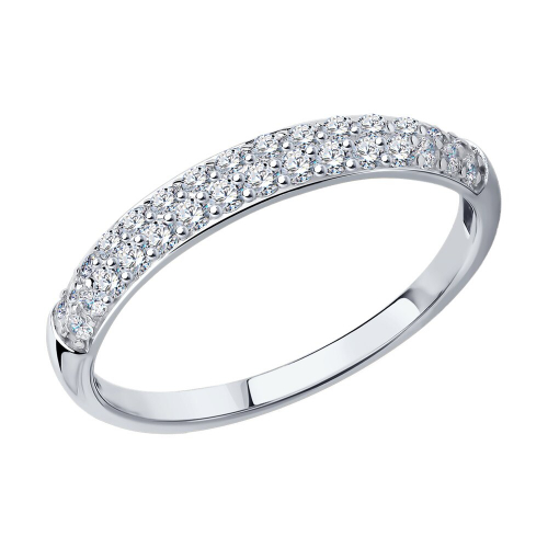 Изящное кольцо, украшенное дорожками сверкающих фианитов, выполнено из белого золота 585 пробы. Классический дизайн украшения универсально подходит к какому угодно образу и способен изящно завершить любой наряд. Изделие представлено брендом SOKOLOV. Вставки: 29 × Фианит недраг Бесцветный 1.25 ~0,479 кар. В комплект поставки входит: