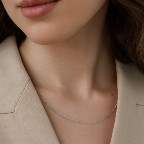 Полновесная цепь из белого золота 585 пробы с прочным панцирным плетением. Известное своей высокой надежностью и эстетичностью, панцирное плетение характеризуется горизонтальным размещением звеньев в единой плоскости, создавая единую и целостную картину. Такое техническое решение обеспечивает ювелирному изделию привлекательную гладкую поверхность и целостность общего впечатления. Данная модель обладает необходимой прочностью и сможет выдержать активное использование, оставаясь актуальной и привлекательной в течение длительного времени. Диаметр проволки 0,25мм. Это универсальный аксессуар, который украсит как женщину, так и мужчину, прекрасно сочетаясь с разными видами одежды и стилистическими направлениями. Представлено брендом КРАСЦВЕТМЕТ. В комплект поставки входит: