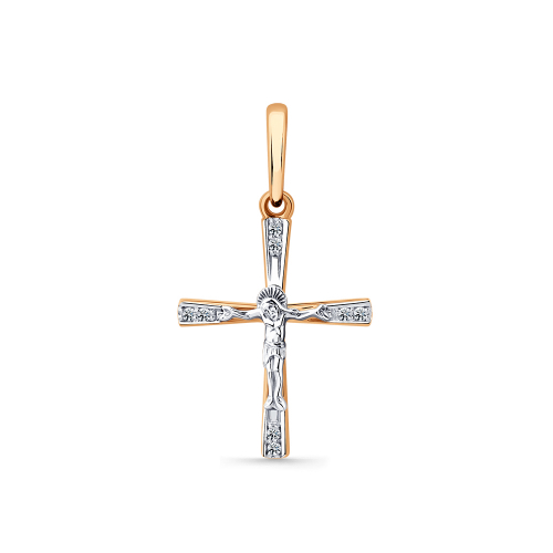 Элегантный православный крест из комбинированного золота — сочетание нежного красного и благородного белого оттенков. Бриллианты, аккуратно вставленные по контуру, подчеркивают строгую линию креста и придают ему сияющий, торжественный вид. Идеальный выбор для тех, кто ищет украшение с глубоким смыслом и современным дизайном.