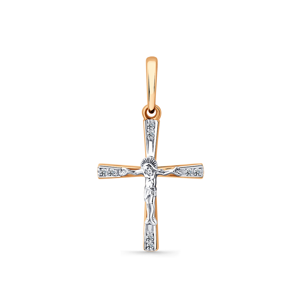 Элегантный православный крест из комбинированного золота — сочетание нежного красного и благородного белого оттенков