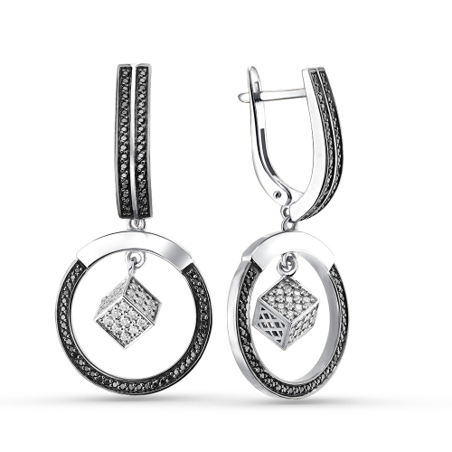 Стильные серьги из белого золота с эффектным контрастом прозрачных и черных бриллиантов — воплощение современной элегантности. Круглая оправа, обрамленная мелкими камнями, и подвижный кубик с паве-инкрустацией создают динамичный, игривый образ. Идеальный выбор для тех, кто ценит необычный дизайн и роскошь в деталях.