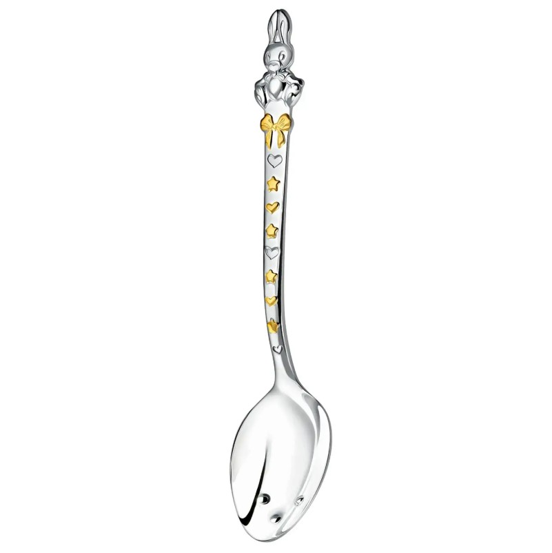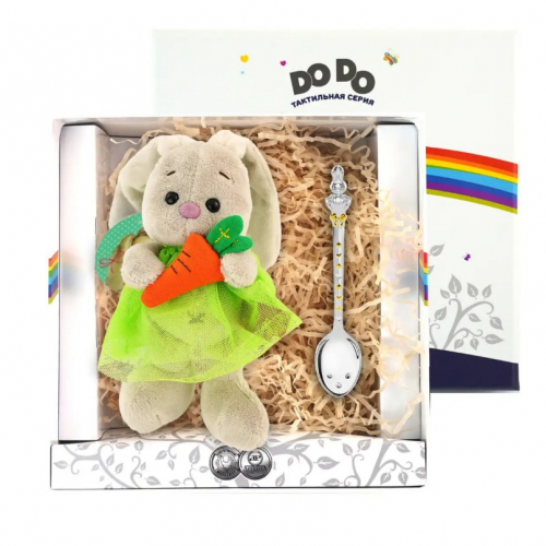 Набор "Зайка" для детей представлен детской серебряной ложечкой с изображением забавного зайчика и подвесным аксессуаром в виде фигурки зверька