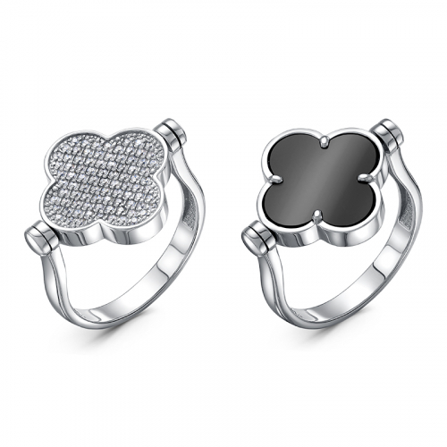 Уникальное серебряное кольцо 925 пробы отличается оригинальной конструкцией с переворачивающейся вставкой. Одна сторона украшения украшена глубоким и загадочным чёрным ониксом, символизирующим силу и уверенность. Вторая же сторона удивляет игрой света благодаря множеству сверкающих фианитов, дарящих ощущение праздника и радости. Представлено брендом DEL`TA. В комплект поставки входит: