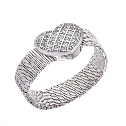 Милое серебряное кольцо 925 пробы имеет романтичную форму сердечка, украшенного сверкающей россыпью циркониев