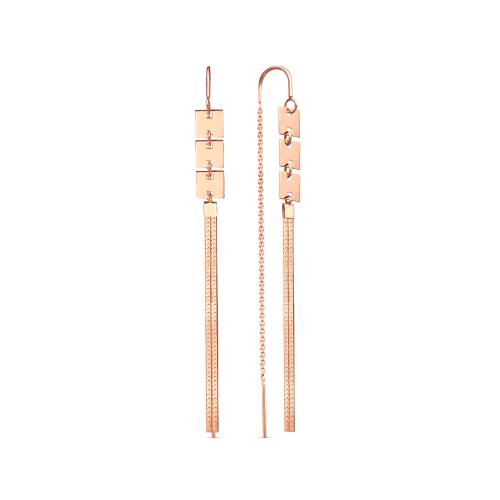 Стильные серьги - цепочки выполнены из красного золота 585 пробы