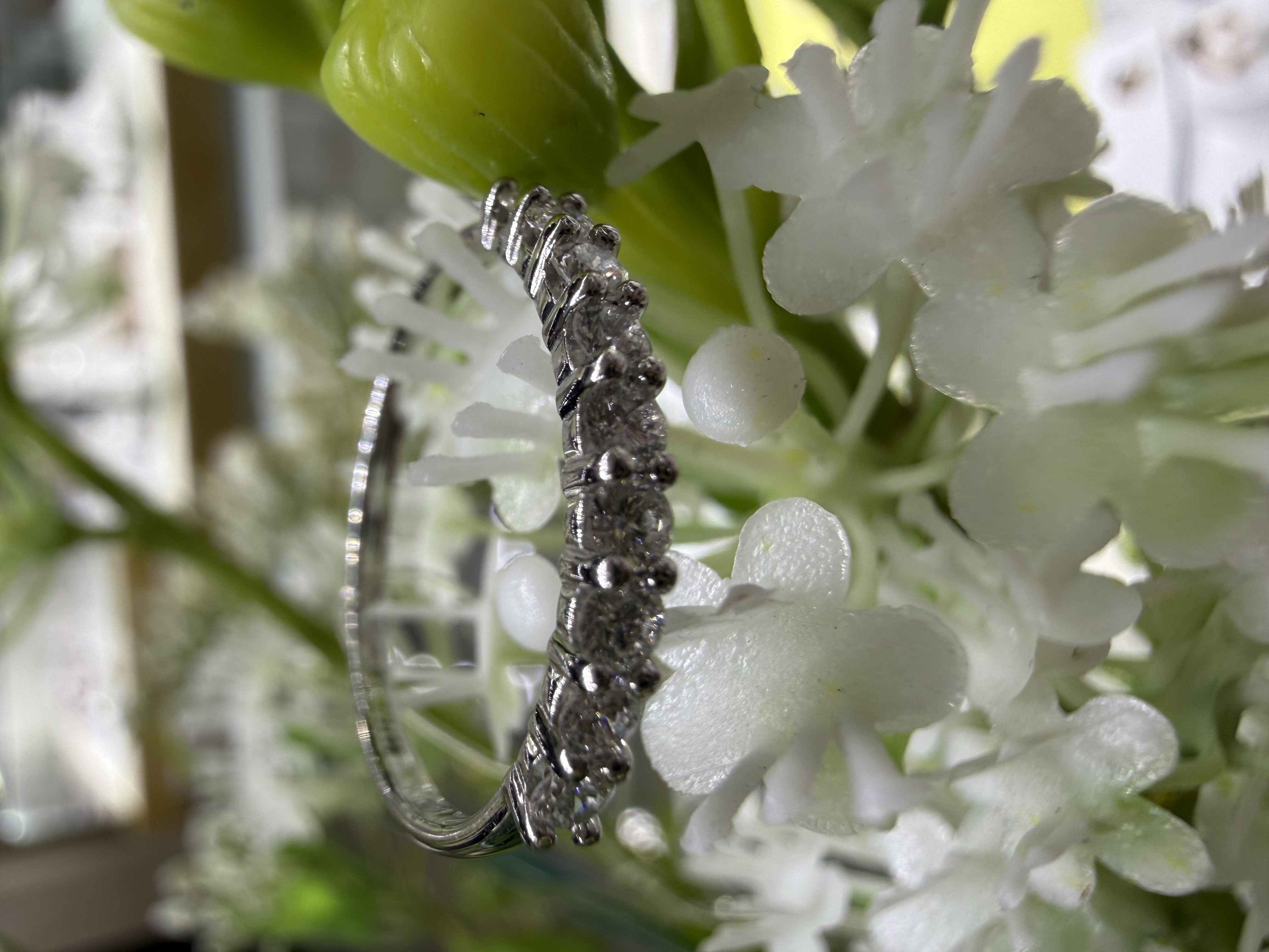 Очень красивая классическая дорожка, камни в сочетании с белым золотом нереально играют при свете. Теперь получился полный комплект к моим серьгам. В салоне широкий выбор украшений на любой вкус.