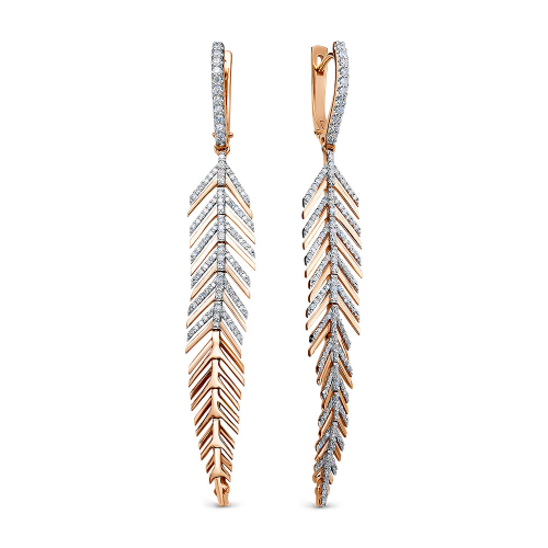 Элегантные серьги из комбинированного золота в форме пера, инкрустированные бриллиантами — символ легкости, женственности и роскоши