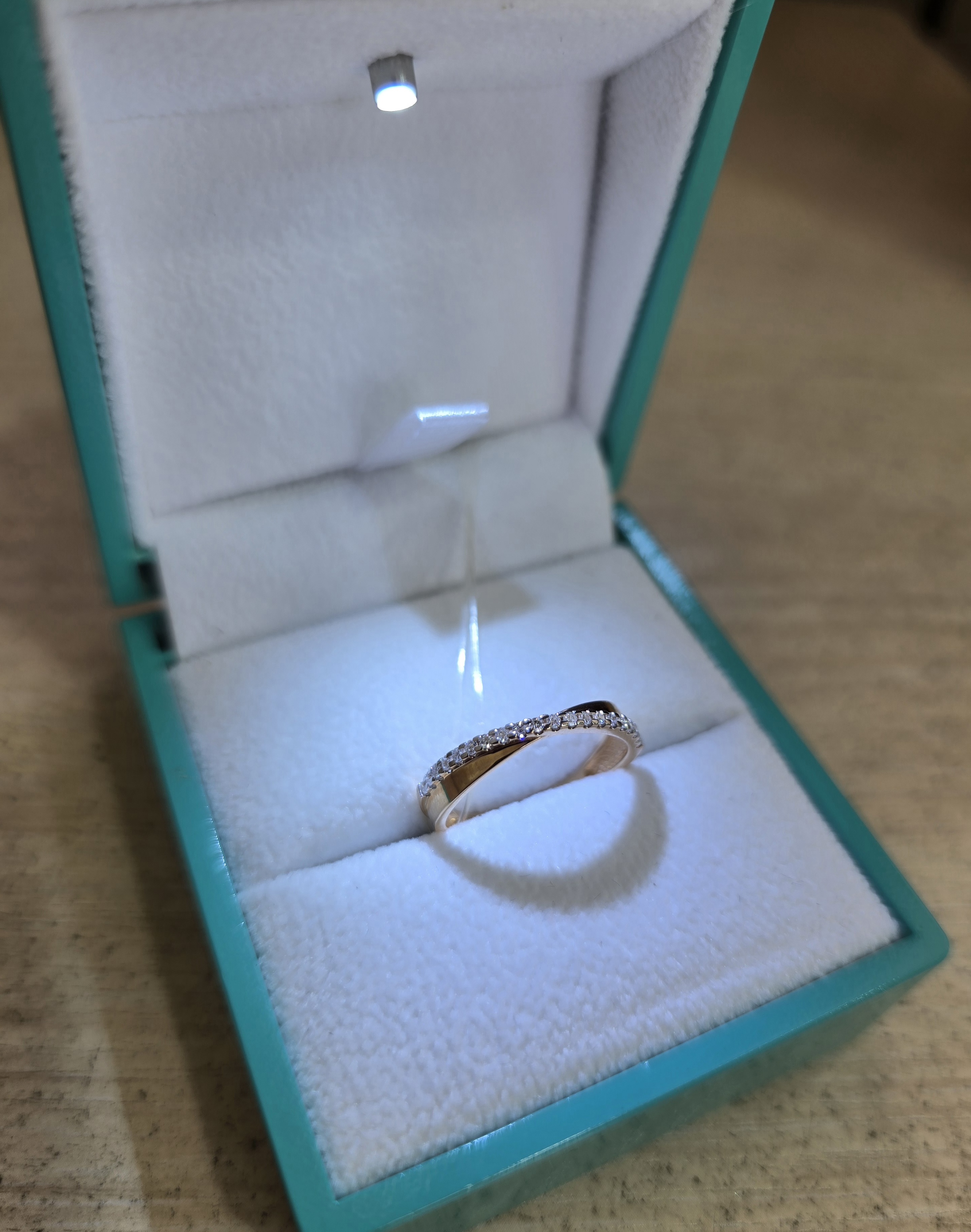 Кольцо для помолвки. Не хотелось девушке с одним камнем, выбрала такое. Понравилось.