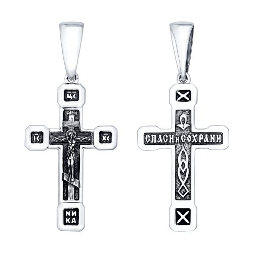 Подвеска в виде нательного креста выполнена из черненого серебра 925 пробы