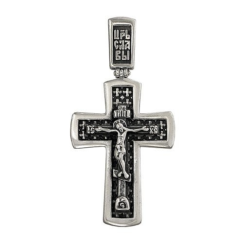 Подвеска в виде нательного крестика выполнена из черненого серебра 925 пробы