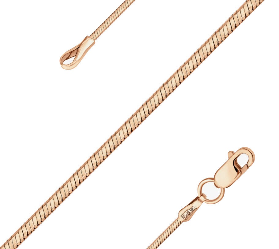 Полновесная цепь из красного золота 585 пробы выполнена в популярном функциональном плетении «снейк»