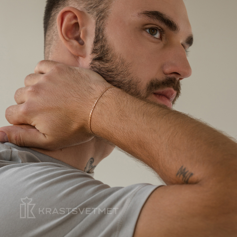 Полновесный браслет из красного золота 585 пробы изготовлен в классическом стиле с плетением «двойной ромб», которое гармонирует с яркой алмазной гранью. Благородный металл и четкие линии звеньев привлекают внимание и демонстрируют отменное мастерство ювелира. Стильно смотрится как на мужчинах, так и на женщинах. Диаметр проволки 0,40 мм. Представлено брендом КРАСЦВЕТМЕТ. В комплект поставки входит: