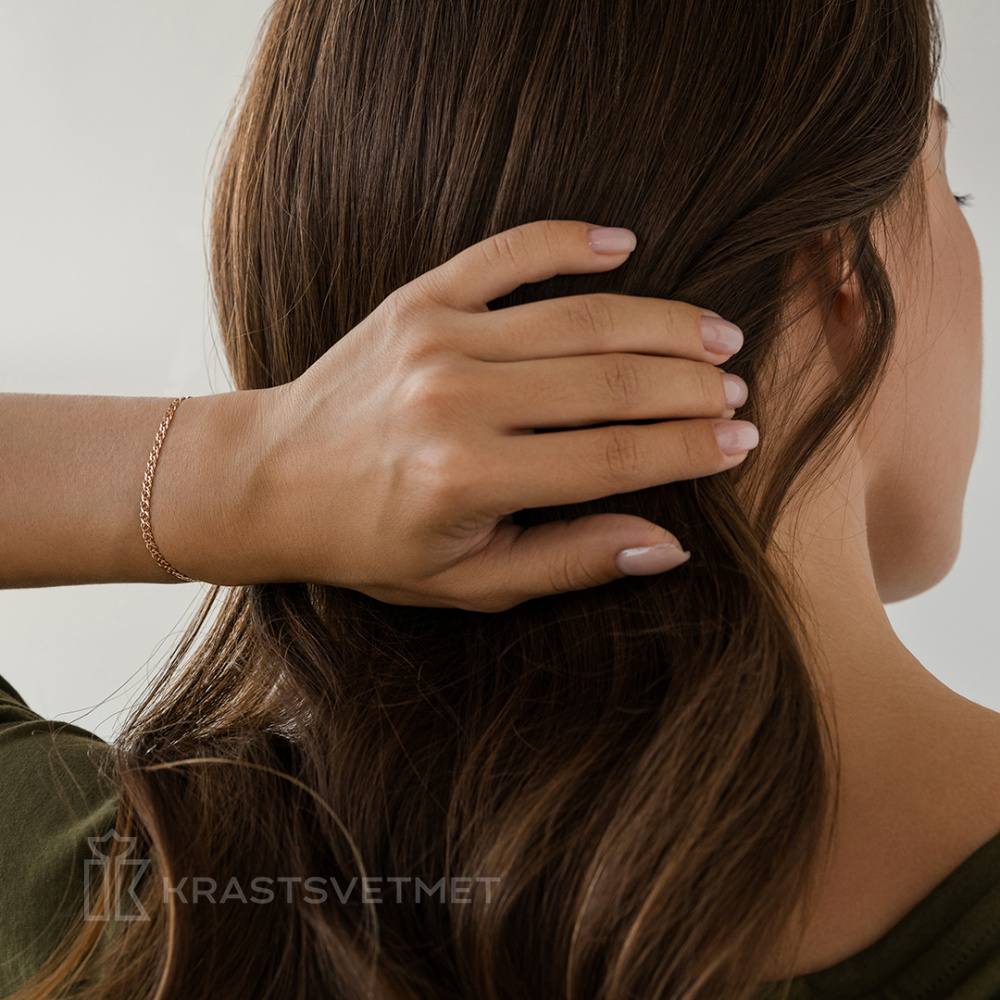 Полновесный браслет из красного золота 585 пробы изготовлен в классическом стиле с плетением «двойной ромб», которое гармонирует с яркой алмазной гранью