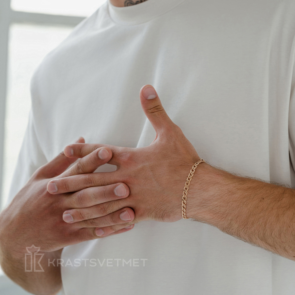 Элегантный полновесный браслет из красного золота 585 пробы с плетением «двойной ромб»