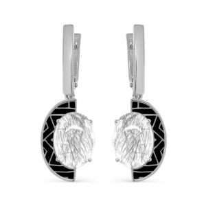 Стильные удлинённые серьги с кварцем и чёрной ювелирной эмалью, выполнены из серебра 925 пробы. Украшения с натуральными поделочными камнями по праву считаются одними из самых необычных и оригинальных. Натуральный поделочный камень с оригинальным узором, созданный самой природой, несомненно, станет центром внимания в вашем образе. Тип замка - английский, самый надежный и удобный.