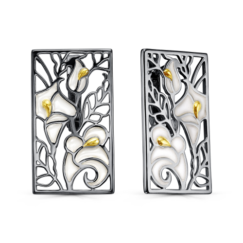 Привлекательные удлинённые серебряные серьги 925 пробы обогащены богатой золотой эмалью, создающей ощущения теплой атмосферы и сияния