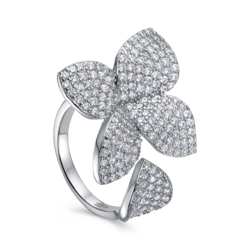 Серебряное кольцо 925 пробы в дизайне объемного цветка с фианитами — это нежное и изящное украшение, которое привнесет в ваш образ немного романтики и элегантности