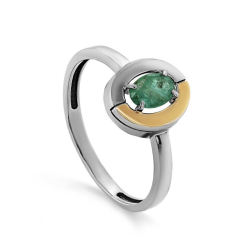 Кольцо с изумрудом выполнено с сочетанием родированного и позолоченного серебра 925 пробы