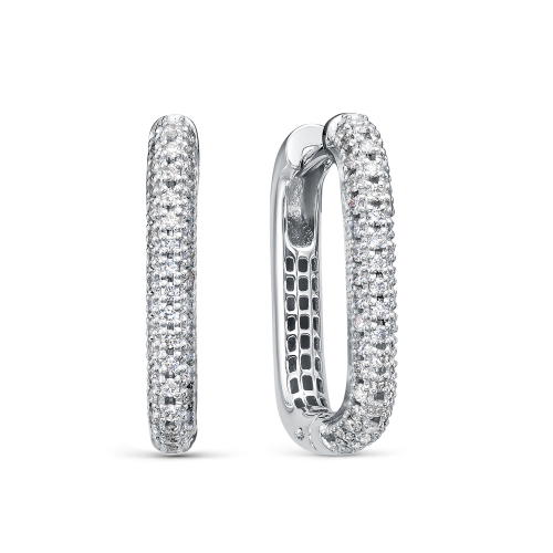 Элегантные серьги-кольца из белого золота, полностью инкрустированные бриллиантами в непрерывной паве-укладке — символ утонченной роскоши и современной классики.