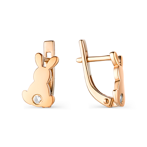 Серьги в виде очаровательного зайки, выполнены из красного золота 585 пробы, со вставкой из фианитов от бренда Veronika