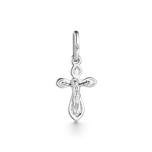 Подвеска в форме крестика выполнена в белом золоте 585 пробы