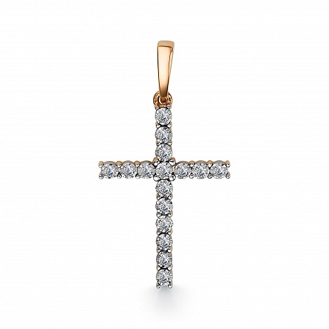 Изящный декоративний крест украшенный искрящимися бриллиантами, выполнен из красного золота 585 пробы. От бренда Алькор.