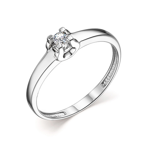 Нежное кольцо для помолвки, выполнено из белого золота 585 пробы, украшено великолепным сияющим бриллиантом