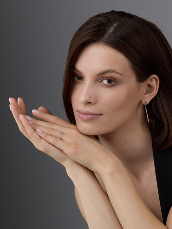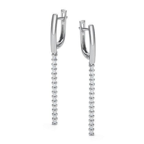 Стильные удлинённые серьги, украшенные сверкающими бриллиантами, выполнены в белом золоте 585 пробы