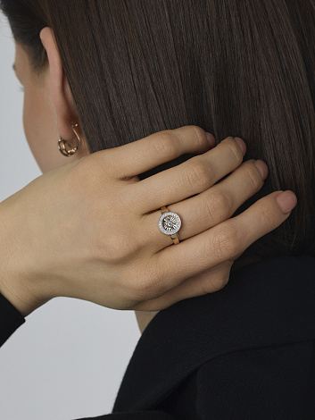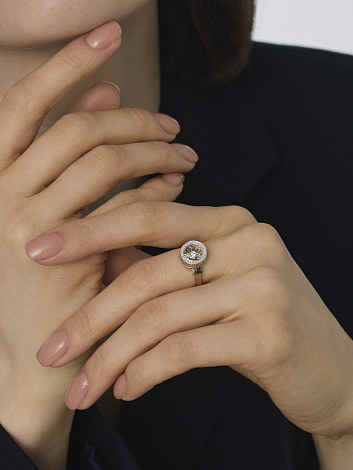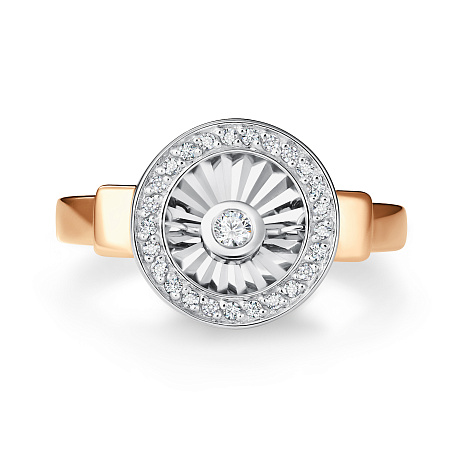 Эффектное кольцо выполнено с сочетанием красного и белого золота 585 пробы, украшенное сияющим бриллиантом