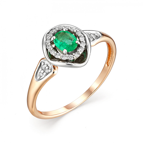 Роскошное кольцо из красного и белого золота 585 пробы с крупным изумрудом и россыпью бриллиантов