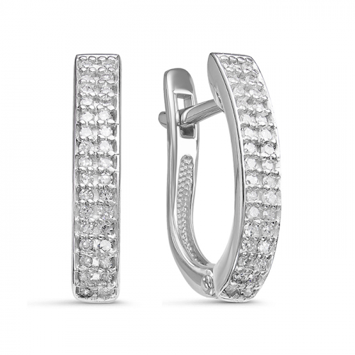 Элегантные серьги из белого золота 585 пробы, украшенные дорожками сияющих бриллиантов. Закрепка бриллиантов в белом золоте, придает камням объем и подчеркивает их природную красоту и игру света. Тип замка - английский, самый надежный и удобный.