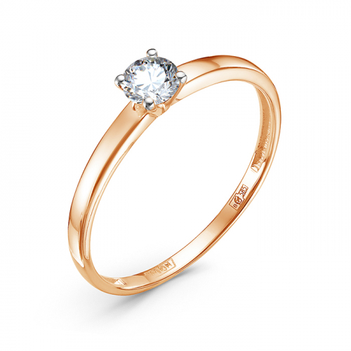 Изящное помолвочное кольцо выполнено из красного золота 585 пробы, украшено роскошным сверкающим бриллиантом