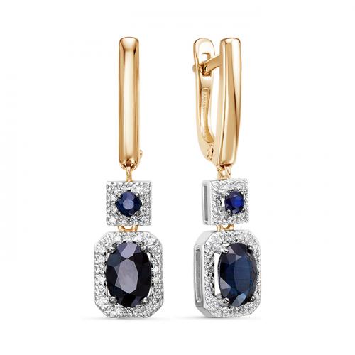 Роскошные удлинённые серьги с натуральными сапфирами в окружении сверкающих бриллиантов, выполнены с сочетанием красного и белого золота 585 пробы. Серьги можно носить с разными образами, и в любом вы будете сиять и привлекать восхищенные взгляды. Тип замка - английский, самый надежный и удобный.