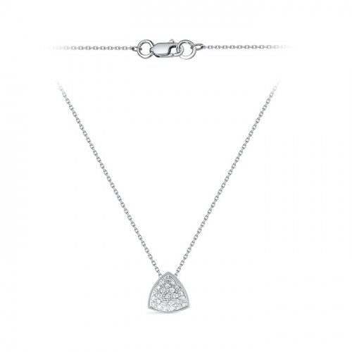 Лаконичное цепочное колье на основе "якорного" плетения, украшенное подвеской в инкрустации сверкающих бриллиантов, выполнено из белого золота 585 пробы