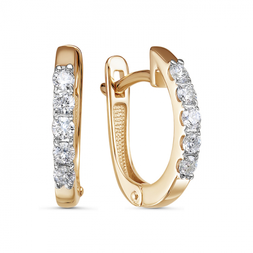 Восхитительные серьги исполнены из утонченного красного золота 585 пробы и акцентированы блестящими дорожками маленьких бриллиантов. За надежность и удобство отвечает проверенный временем английский замок.