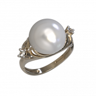 Изделие украшено великолепным жемчугом белого цвета и сияющими фианитами.