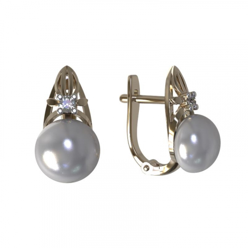 Элегантные серьги выполнены из благородного красного золота 585 пробы и украшены натуральным жемчугом и сверкающим фианитом