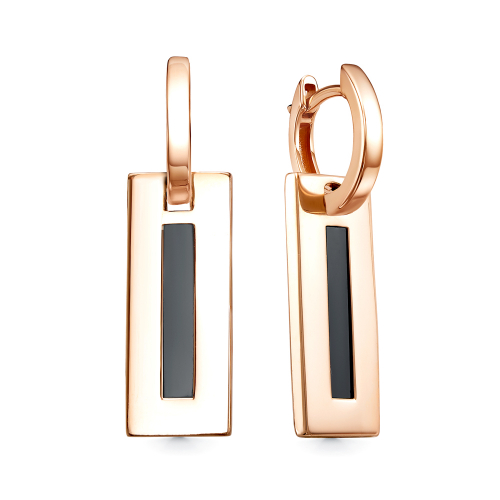 Стильные серьги выполнены в геометрическом дизайне из красного золота 585 пробы и украшены чёрными ониксами