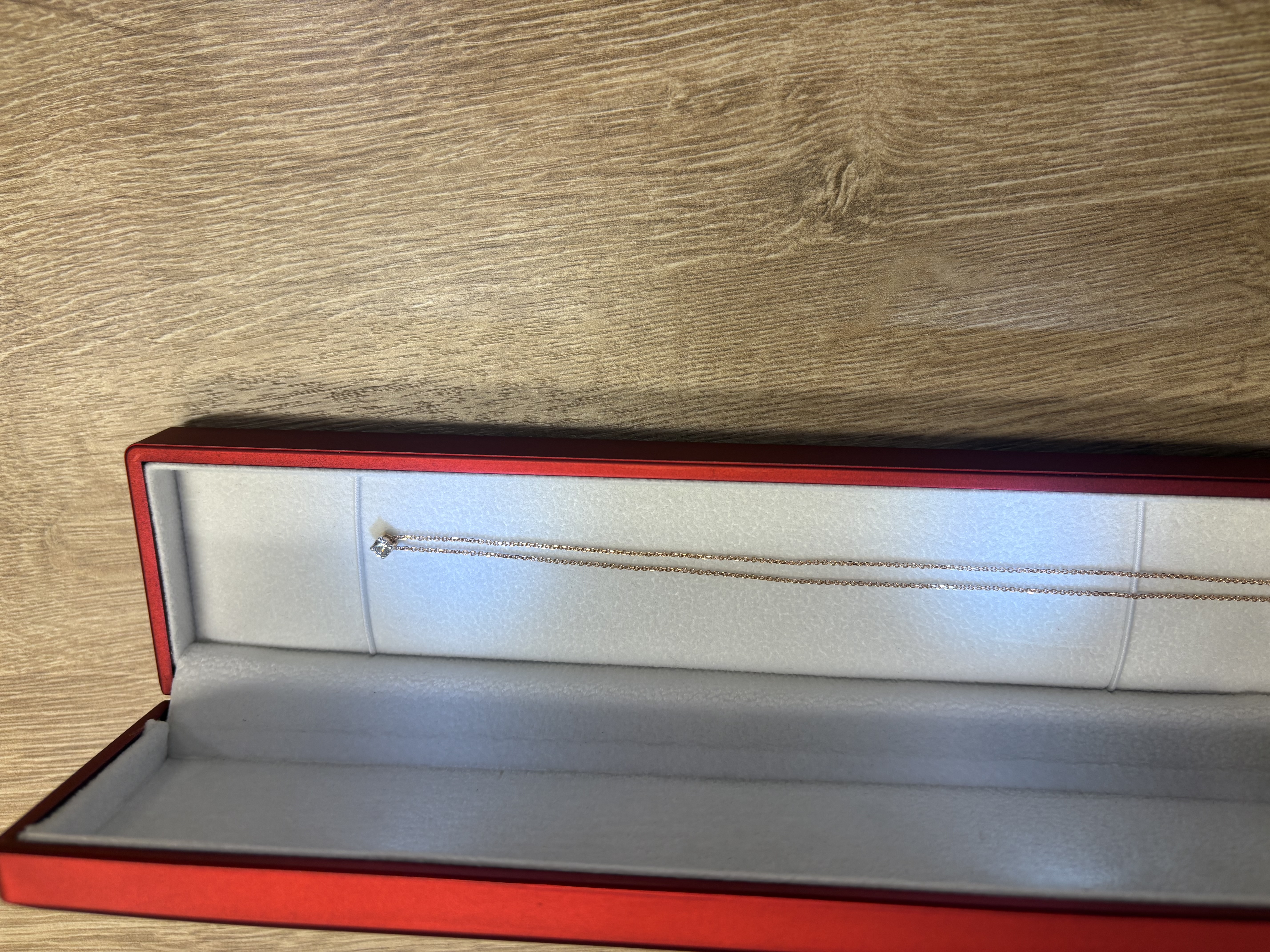 Классическое колье с бриллиантом , подходит абсолютно ко всем моим украшениям , цепочка с алмазной гранью очень красиво переливается