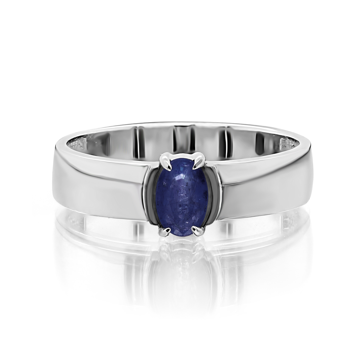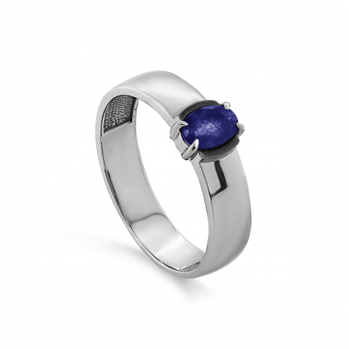 Кольцо с синим сапфиром выполнено из родированного серебра 925 пробы