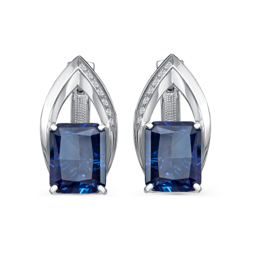 Серебряные серьги с глубоким синим бриллианитом огранки «октагон» в центре, с дорожками сияющих фианитов, станут изысканным дополнением вашего стиля
