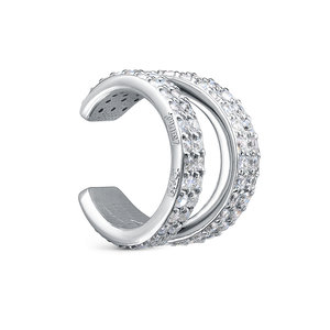 Стильная двойная серьга - кафф, инкрустированная фианитами, выполнена из родированного серебра 925 пробы