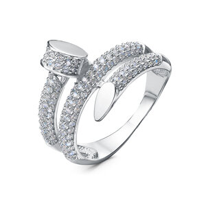 Стильное кольцо, выполнено из серебра 925 пробы, украшено россыпью искрящихся фианитов