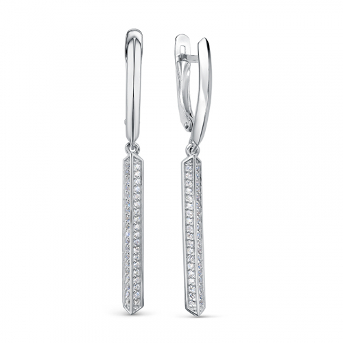 Серебряные серьги с удлинённой подвесной частью, украшенные россыпью сверкающих фианитов, привлекают внимание своей изысканностью и элегантностью